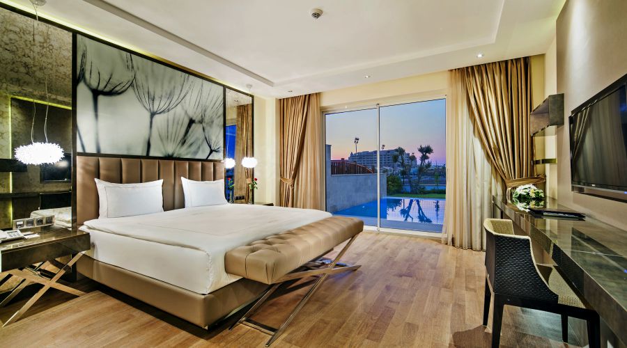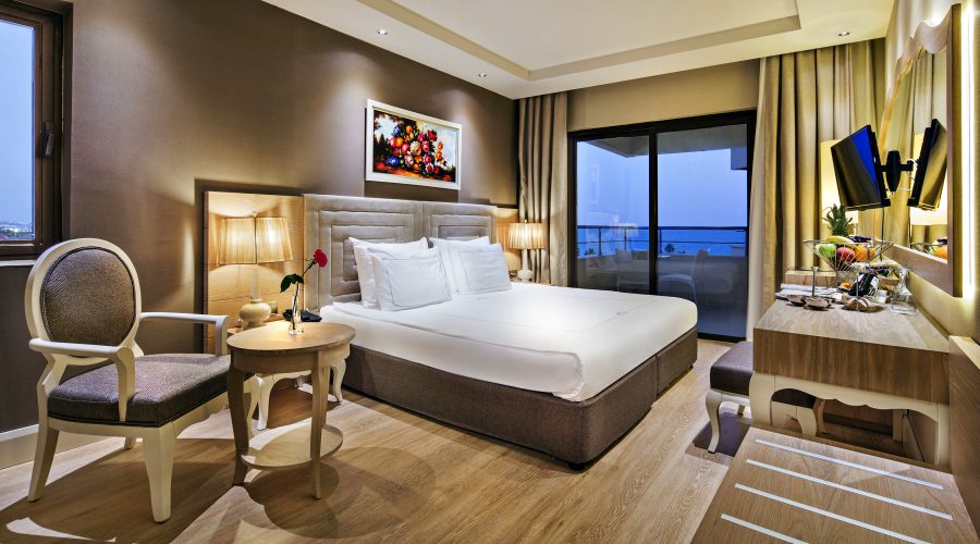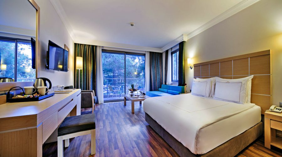 Находятся в главном здании, с частичным или с прямым видом на море. Двухкомнатный номер с межкомнатной дверью, двуспальная кровать и 2 односпальные, балкон, 1 ванная комната с ванной, туалет, центральная система кондиционирования, чайник, 2 LED ТV, телефон, мини-бар, сейф, фен. Макс. размещение 4 +1 чел.