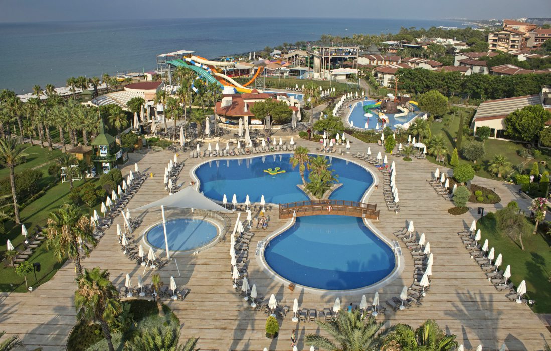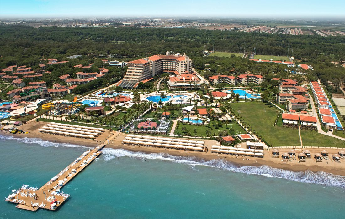 Отель расположен в 32 км от аэропорта г. Анталья, в 5 км. от поселка Белек, на берегу моря. Отель построен в 1992 г, в 2014 году была проведена полная реновация отеля, были открыты новые корпуса Jasmine Lake House, Villa Bellis и Villa Diamond. Общая площадь отеля 135.000 м2 . Отель состоит из основного 6- этажного здания, 2-ух этажного Mimosa Garden, четырех 3-ех этажных Camelia Garden, восьми 3-ех этажных Jasmine Lake Houses, двух 3-ех этажных Camelia Superior Family и восьми Villa Bellis и одной Villa Diamond. Пляж собственный песчаный, 290 м, сертификат Голубого флага, один пирс. Разрешение размещения с животными запрещено